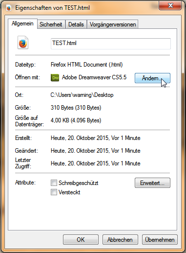 Na ja, Schade. Ich hatte zwar weiter oben vermerkt, dass "meine HTML-Dateien ... standardmäßig mit meinem Brauser (Firefox) geöffnet" werden, wie in Ihrer zweiten Grafik dargestellt ist. Aber wenn wir da zu keinem Konsens kommen können ...Re: Verschiedene Fragen ...Hallo hdamm,