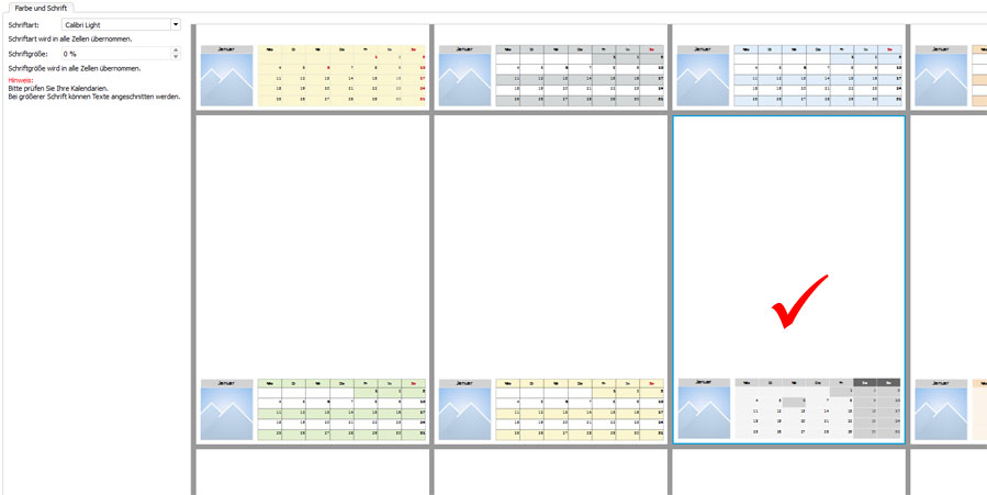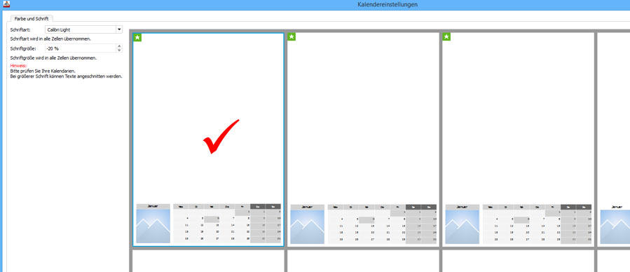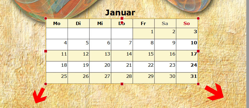 Sylke hat geschrieben: Zu Frage 3a und 3b: Bei einem Kreativkalendern können Sie frei entscheiden, welche Schriftart und -größe Sie verwenden möchten. Klicken Sie dazu doppelt auf das jeweilige Element. Es öffnet sich dann ein Dialogfenster.