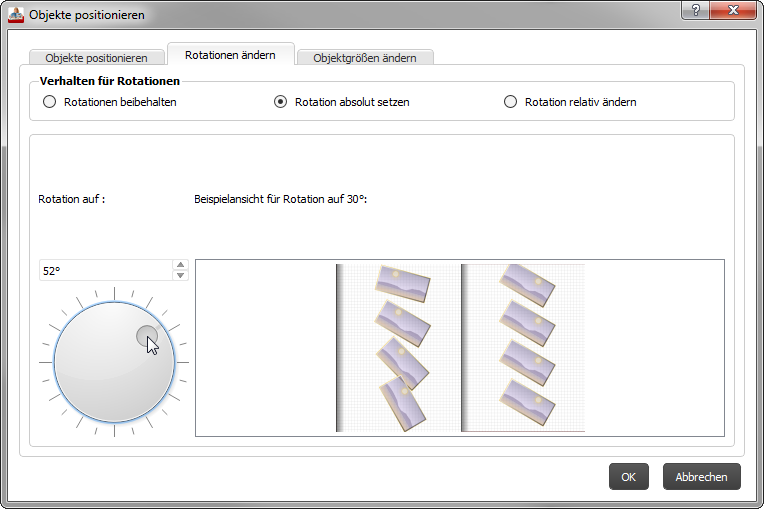 Möchten Sie die Rotation in dieser Funktion ändern, dann haben Sie hierfür zwei Möglichkeiten. Zum einen können Sie die Rotation absolut setzten oder die Rotation relativ ändern. Entscheiden Sie sich für die erste Variante, dann dreht sich Ihr Bild auf den Wert, den Sie in das Feld eingeben, egal ob die vorherige Drehung größer war.