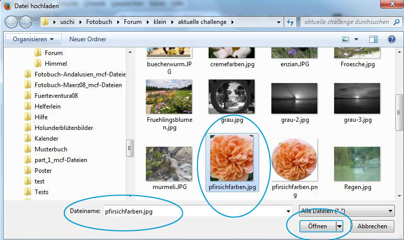 2.) ein Fenster geht auf. Darin suchst Du den Ordner, in dem Du die Datei gespeichert hast. Klicke auf die Datei, dann auf "öffnen".