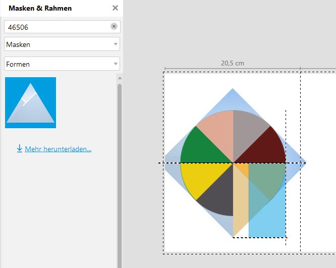 --> Platzhalter 16x16 cm erstellt und mit ALT+HV mittig auf der Seite ausgerichtet. Das ist für alle weiteren Schritte meine Ausrichtungshilfe. --> 4 Platzhalter 8x8 cm erstellt und auf dem Hilfsplatzhalter jeweils mithilfe der Magnetfunktion bündig ausgerichtet. Mit Viertelkreismasken zum Kreis formatiert. --> Die 4 Platzhalter, die den Kreis bilden, gemeinsam markiert, kopiert und auf der leeren Nachbarseite eingefügt --> 2. Viertelkreiskombination gemeinsam markiert und um 45° gedreht --> Hilfsplatzhalter aus Schritt eins ebenfalls um 45° gedreht --> 2. Viertelkreiskombination mithilfe der Magnetfunktion mit der 1. Viertelkreiskombination bündig übereinander ausgerichtet --> Viertelkreise in den Ebenen so verschoben, dass Achtelkreise entstehen, bis auf einen --> neuen Fotoplatzhalter eingefügt und mithilfe der Magnetfunktion an der horizontalen Mittellinie, der linken Spitze des Hilfsplatzhalters sowie an der diagonalen Linie des benachbarten Viertel-/Achtelkreises ausgerichtet. Anschließend mit Maske 46506 belegt --> den Hilfsplatzhalter abschließend mit ALT+ +(Plus) in die oberste Ebene geholt, dann mithilfe der Eckenfunktion vollständig gerundet, 100% transparent gezogen und mit einem Farbrand innen 35,0 mm versehen. EDIT: Und natürlich habe ich zwischendurch alle Platzhalter mit (hier einfarbigen) Fotos bestückt. Hallo spica, Punkt 4: Den Hilfsplatzhalter konnte ich nicht markieren und musste die eingefügten Elemente zeitweilig verschieben. Punkt 7: Bei der Ebenenverschiebung habe ich immer ein anderes Bild als in Deinem Beispiel erhalten. (Kopie rechtes Bild anders gedreht??) Punkt 8: Hier hatte ich Schwierigkeiten. Ist es richtig, dass ich der Maske Dreieck eine Farbe zugeordnet habe? Gruß Reisender Re: Ebenen anordnenReisender hat geschrieben: