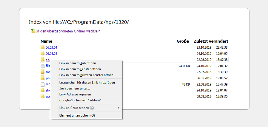 So bin ich vorgegangen: Ich habe den Pfad C:\ProgramData\hps aus Nr. 2 von Sylkes Anleitung mit STRG+C kopiert und mit STRG+V in die Adressleiste im Windows Explorer eingefügt. Enter. So schaut es dann aus: Danach Doppelklick auf den Ordner mit der Zahl (bei mir 1320) und dann sehe ich u.a. den Addon-Ordner und kann ihn löschen. Nachtrag: Für manche Aktionen musst Du Administrator-Rechte haben. Ich weiß nicht, wie Du die Benutzerkonten an Deinem PC eingerichtet hast. Liebe Grüße