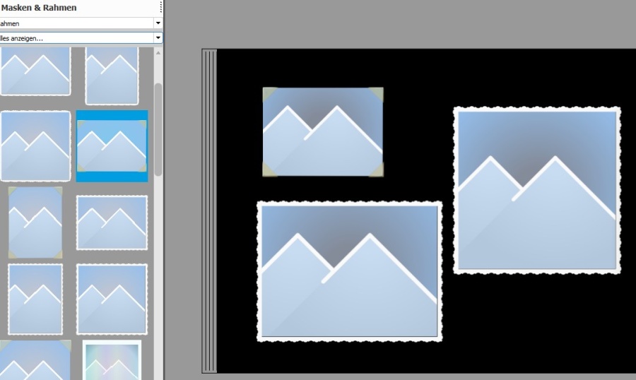 Danke, das ist genau das was ich gesucht habe!schau mal unter "Masken und Rahmen" - "Film", dort müsstest du die gewünschten Rahmen für die Fotobuch-Gestaltung finden. Und wenn nicht alle dabei sind, klicke auf "mehr....", suche die Rubrik und wähle die entsprechenden Masken aus. Viel Erfolg und gutes Gelingen wünscht die Silber-Distel. :P