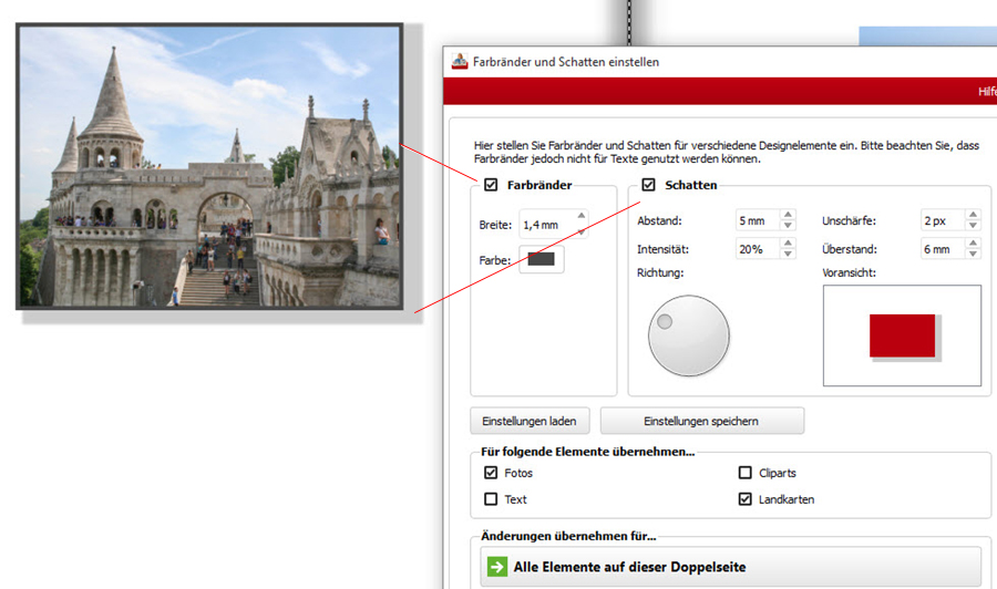 Schau mal ob nicht vielleicht ein Haken bei Bildrahmen oder Schatten gesetzt ist.