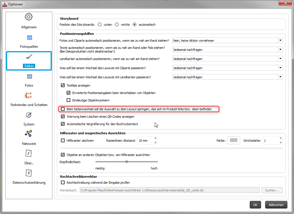mit unseren 6er Versionen ist in den Optionen eine Funktion dazugekommen, die es ermöglicht die Layoutauswahl beim Seitenwechsel beizubehalten. Aktivieren Sie jedoch in den Optionen unter dem Punkt "Editor" den im Screenshot markierten Punkt, sollte die Auswahl wieder wie gewohnt mitwechseln Liebe Grüße
