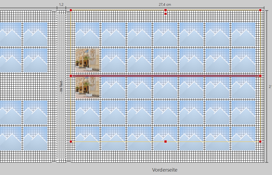 Jetzt hab ich auch grad ein bisschen an einem Fotobuch gearbeitet und nebenbei deine Cover-Gestaltung ausprobiert. Mit der Ausrichten-Funktion und der dickeren Linie #63467 klappt das gut.