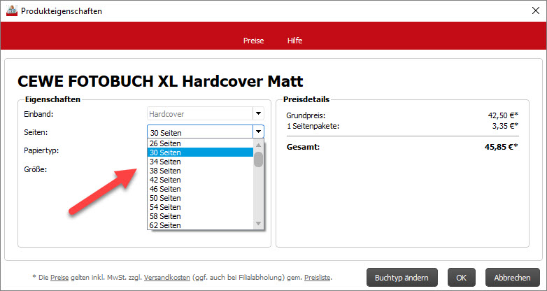 Vielen Dank für den tollen Support. Ich habe noch einmal die Preise neu geladen und es ist tatsächlich nach einem kompletten Neustart gegangen. Ich kann mich wieder für nur 4 Seiten +/- entscheiden und die Veredlung am Deckblatt funktioniert ebenfalls wieder.