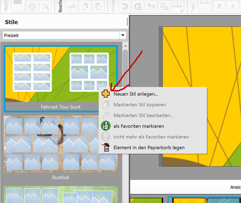 Re: Original-Seitenverhältnis von Fotos beibehalten - welches Layout?okular hat geschrieben: n der Version 6.3.1 ist das Kontextmenü aber abgespeckt: Die Optionen "Neuen Stil anlegen", "markierten Stil kopieren" und "markierten Stil bearbeiten" sind entfallen.
