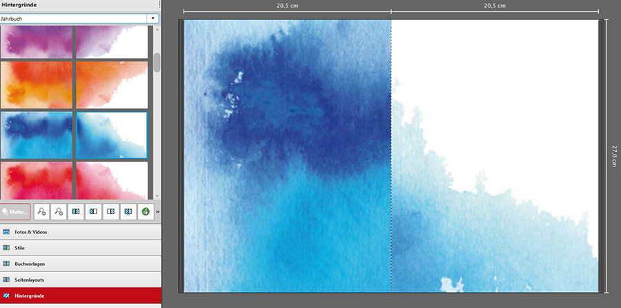 dieser Hintergrund ist in offenbar nur für Hochkantformate (also nicht für Panorama- und quadratische Fotobücher) geeignet.