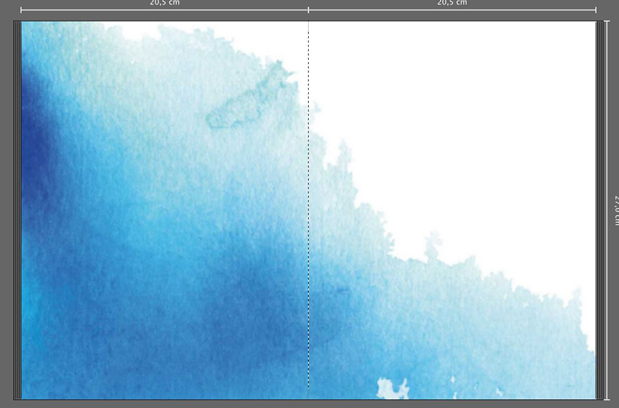 Wie sieht es aus, wenn Du auf der linken Seite den dazu passenden Hintergrund einfügst, der auf Deinem Screenshot der Auswahl zu sehen ist? Es sieht aus, als würden die beiden Seiten-Hintergründe so zusammengehören.