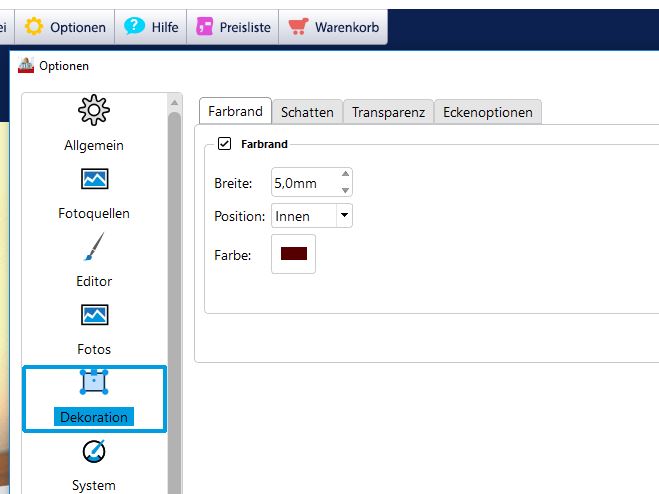 U.U. hast Du im Menü unter Optionen diese Anwendung der Dekoration aktiviert, die beim Einfügen der Fotos wirkt. Das kannst Du dort wieder ausstellen, ändert aber nicht die Gestaltung für schon eingefügte Bilder.