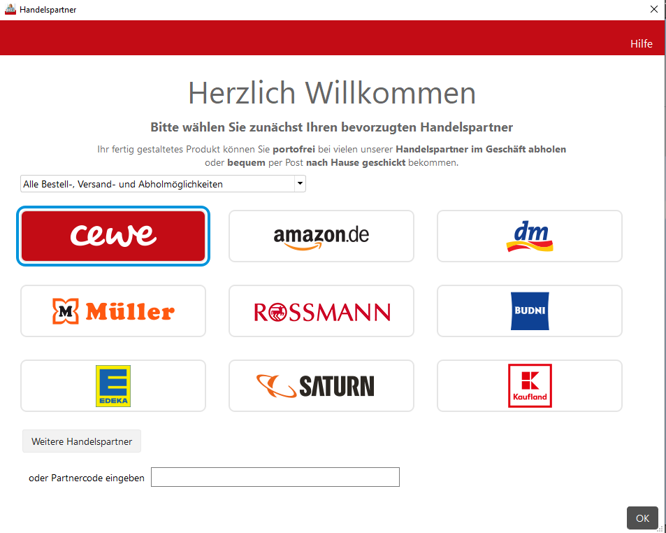 die Liste der Handelspartner findest Du in okulars toller Liste: viewtopic.php?f=2&t=10426 Ich gehe immer so vor: ich wähle in der Liste bei Cewe-Fotowelt (Version handelspartnerabhängig) den gewünschten Handelspartner meines Landes aus und lade die passende Software (Windows, MAC ect.)herunter. Siehe: Liebe Grüße