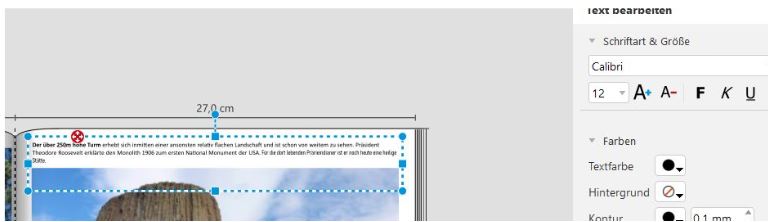 Zusätzlich ungünstig ist, dass die Kontur-Einschaltung manchmal nur in den Einstellungen direkt sichtbar ist und man die Auswirkung im Textfeld erst später bzw. beim nächsten Öffnen sieht.