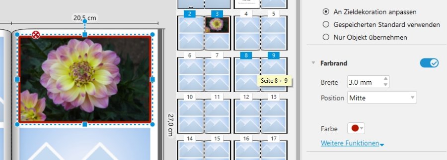3) Unter Dekorieren > Farbrand die Einstellungen wie im Screenshot