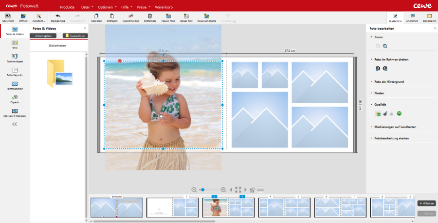 bereits erstelltes Fotobuch genommen und versuche, einige Seiten nachzustellen.