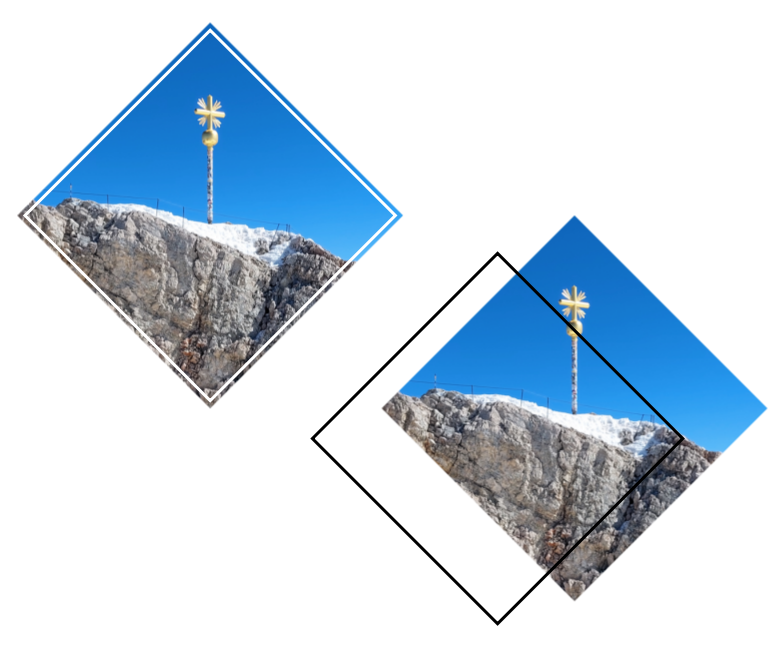 Eine Möglichkeit wäre, eine etwas kleinere transparente Raute, versehen mit einem Farbrand außen, über die Raute mit dem Bild zu legen.