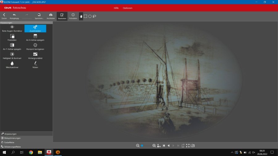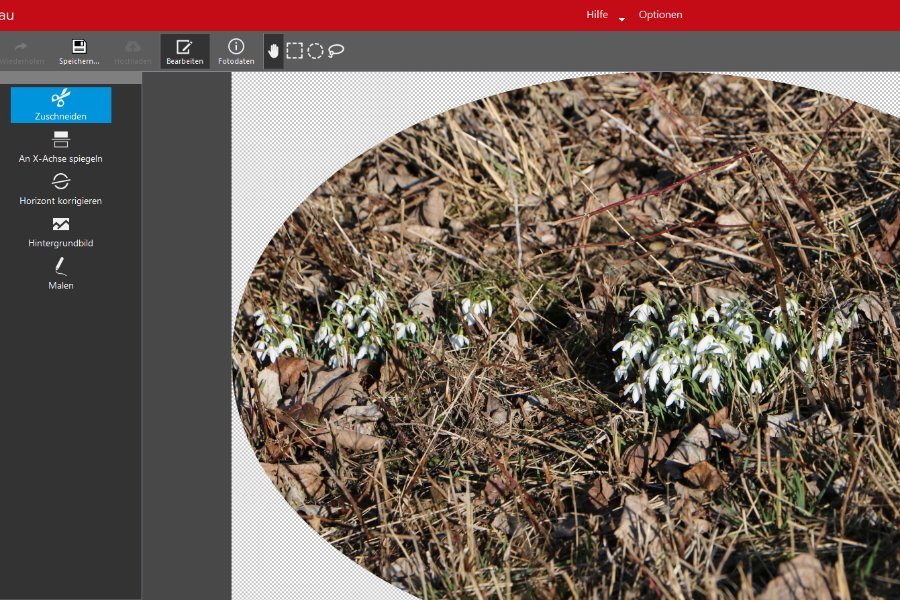 Re: Bilder mit runder Maske zuschneidenIch habe es eben auch ausprobiert, allerdings noch mit 712. Bei mir ist das Ergebnis bei Einstellung "Weiche Kante 0" scharf abgegrenzt und sieht in der Fotoschau nach Klicken auf "Zuschneiden" mit transparentem Hintergrund so aus: