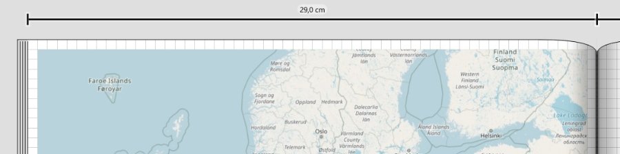Ich finde es daher sinnvoll, sowohl das voreingestellte Textfeld auf dem Cover als auch die Größe der automatisch platzierten neuen Landkarte zu verkleinern. Die Landkarte würde mit der aktuellen Einstellung sowieso zu einem Teil im Falz verschwinden. Aber auch die Platzierung mit nur 5 mm Abstand zum Rand führt bei den einzukalkulierenden Schnitttoleranzen mit hoher Wahrscheinlichkeit zu einer sichtbar ungleichen Platzierung auf der gedruckten Seite.