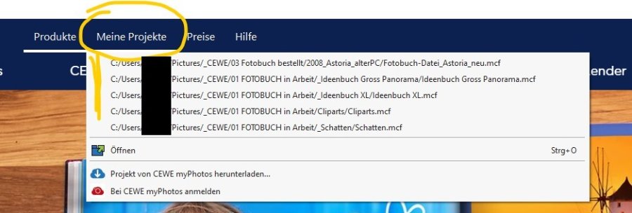Du kannst zur Prüfung unter "Meine Projekte" und dann unter "Öffnen" schauen. Liegt hier eine weitere CEWE Fotobuchdatei vor?