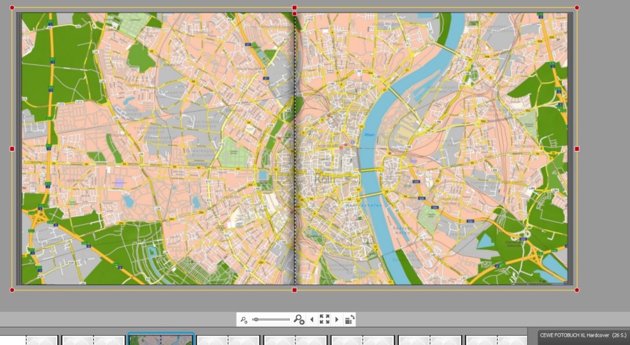 für dein Problem gibt es eine provisorische Lösung, die Sylke bereits angesprochen hat: Anstelle "Karte als Hintergrund" kannst du die Karte ganz normal als Bild einfügen und soweit über den Blattrand ziehen, dass garantiert keine Blitzer entstehen. Bei doppelseitigen Karten und bei Karten auf der ersten rechten Innenseite ist das gar kein Problem, da man noch nicht mal genau in der Buchmitte justieren muss. Den von dir beobachteten Effekt mit dem roten Warndreieck kannst du umgehen, indem du ein weiteres Mal auf die Karte doppelklickst und den veränderten Ausschnitt nochmals nachlädst ("Übernehmen"). Bei Benutzung der Buttons "+" und "-" sind die Sprünge relativ groß. Etwas feiner sind die Maßstabssprünge, wenn man das Scrollrad der Maus verwendet. Re: Probleme mit Landkarte im Fotobuchokular hat geschrieben: