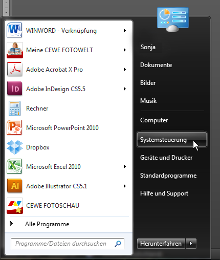 Sie wählen im Startmenü den Punkt „Systemsteuerung“ aus.