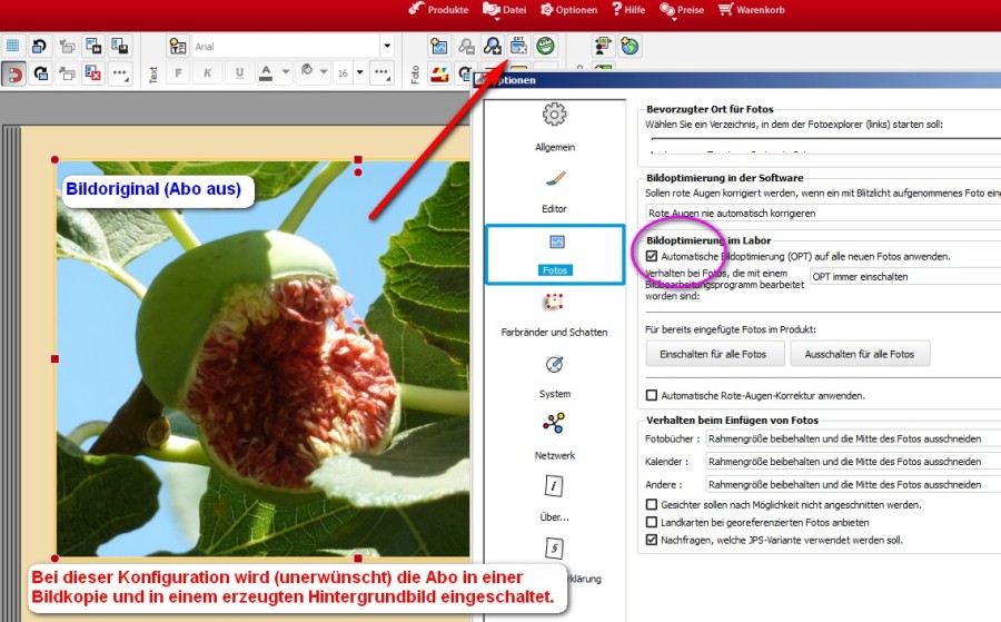 Wir laden Sie herzlich ein, die neue CEWE Community mit integriertem Forum zu entdecken und künftig zu nutzen. Das bisherige Forum, in dem Sie sich gerade befinden, steht nur noch bis Ende 2025 für neue Beiträge zur Verfügung und wird ab dem kommenden Jahr 2026 nur noch lesend zugänglich sein. Informieren und registrieren Sie sich jetzt in der neuen CEWE Community – wir freuen uns auf Sie! 5.1.0 - Ungewollte Einschaltung der autom. BildoptimierungBetriebssystem: Windows