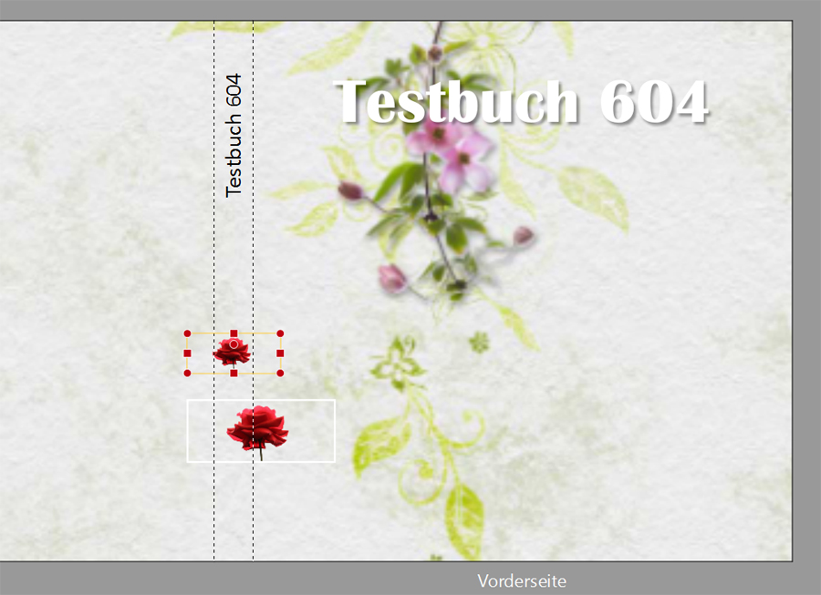 Wenn man auf beiden Seiten des Elements, das man auf dem Buchrücken einfügen möchte, einen "unsichtbaren" Hintergrund anlegt (png.), der groß genug ist, dann ragt das Element so weit auf das Cover, dass es problemlos verschoben, angepasst oder auch gelöscht werden kann. Ich habe dem ausgeschnittene Blumenbild rechts und links noch genügend unsichtbaren Hintergrund gegeben, dass der Auswahlrahmen angewählt werden kann. Das geht natürlich auch bei ganz normalen viereckigen Fotos. Liebe Grüße