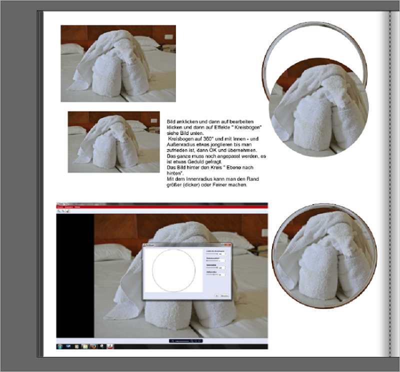Ich habe das Beispiel gleich in mein Testbuch gespeichert und das Bild mal vor, mal hinter den (bei mir weißen) Kreis gelegt, so kann ich auch ein kreisrundes Foto meinen sehr oft mit weißem Rand versehenen Fotos prima angleichen. Je nachdem, ob ich einen sehr schmalen oder einen breiteren Rahmen benötige. Ich bin immer wieder dankbar für solche Ideen - man könnte auch selbst darauf kommen :roll: :wink: