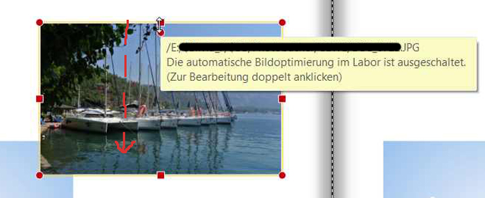 Bild markieren und am oberen mittleren Markierungspunkt fassen und mit der Maus nach unten ziehen:
