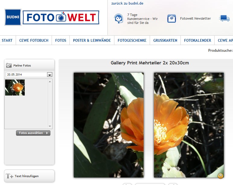 Tatsächlich sind die Mehrteiler bisher leider nur online bestellbar. Ob dieses Produkt zukünftig auch in die Software aufgenommen wird, kann jedoch diskutiert werden. Ich werde Ihren Wunsch an meine Kollegen weiterreichen. Der Bereich Themenwelten in der Software bezieht sich auf den Bereich Anlässe/ Themenwelten, den Sie auch auf den Onlineseiten Ihres Handelspartners betrachten können. Zum Beispiel: http://www.onlinefotoservice.de/themenw ... reise.html http://www.fotoparadies.de/anlaesse/ostern.html http://www.mueller.de/foto/themenwelten/fernreise.html Da diese Inspirationsquelle auch in die Software eingebunden ist, wäre sicherlich ein Hinweis bei nur onlinebestellbaren Produkten sinnvoll. Ich werde dies als Verbesserungsvorschlag an meine Kollegen weiterreichen :) hat geschrieben: In der Vorschau bei budni sieht es so aus, als würde zwischen den Fotos ein Streifen wegfallen. Das ist doch hoffentlich nur der Voransicht geschuldet :(