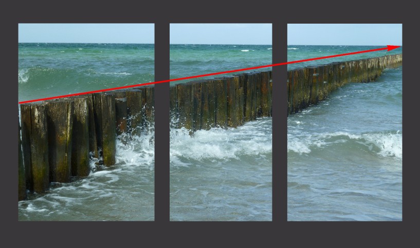 Okular hat das sehr schön bildlich aufgefasst. Besser kann ich es gar nicht beschreiben :) Im ersten Moment erscheint es Ihnen vielleicht schade, dass ein Teil "wegfällt" jedoch sorgt gerade dies dafür, dass der Gesamteindruck erhalten bleibt. Auf den Beispielbildern von Okular kann man gut erkennen, dass Linien in Bilder so gestört werden würden. Man könnte sogar sagen, dass aus der einen Linie (roter Pfeil) im unteren Beispiel 3 Linien entstehen, weil jede eine eigene Flucht hat. Bei dem Beispielbild mit der Blume, dass Sie gewählt haben, ist der Wegfall schon störend, da die Trennung direkt auf dem Hauptmotiv verläuft. Bei Mehrteiler empfiehlt es sich wichtige Bildteile nicht auf die Trennung zu legen. Ich habe vor einiger Zeit einen Beitrag verfasst, wie man Porträts auf Mehrteilern anordnen kann. Diese Gestaltungsmöglichkeiten funktionieren jedoch auch bei anderen Motiven wie Blumen: Mehrteiler – machen Sie mehr aus Ihren Porträts Liebe Grüße