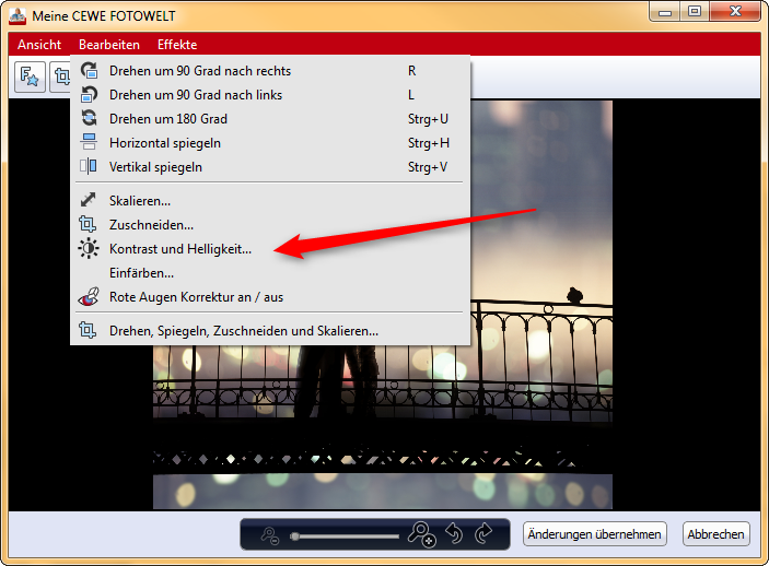 Inwieweit die Automatische Korrektur bei Ihren Bilder zu dem erwünschten Ergebnis führt, hängt von der Stärke der Unterbelichtung ab. Wie stark ist die Unterbelichtung Ihrer Fotos? Sie können mir auch gerne ein Beispielbild an forum@cewe.de senden. Sollten Sie nur die Helligkeit geringfügig anpassen wollen, können Sie mit einem Doppelklick auf Ihr Foto auch die CEWE Fotoschau öffnen und damit die Helligkeit zusätzlich optmieren. Machen Sie dafür einen Doppelklick auf Ihr unterbelichtetes Bild. Daraufhin wird sich dies in einem neuen Fenster öffnen. In dem Dropdownmenü "Bearbeiten" finden Sie einige grundlegende Bearbeitungsmöglichkeiten wie auch Helligkeit und Kontrast: Sollten Sie sich für die ABO entscheiden und mit dem Ergebnis nicht zufrieden sein, fällt dies aber selbstverständlich unter die Zufriedenheitsgarantie. Liebe Grüße
