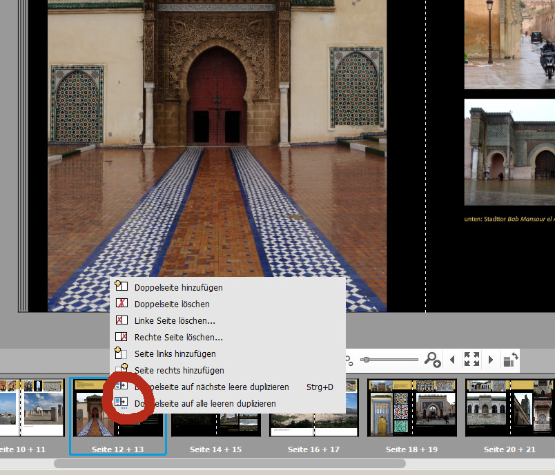Hier noch ein Vorschlag, falls Du gerne mit einem Grundlayout arbeiten möchtest: Ich lege auf der ersten Doppelseite das Grundlayout an und kopiere dieses mit "Doppelseite auf nächste duplizieren". In der unteren Layoutleiste auf die gewünschte Doppelseite mit rechts klicken. Und im Fenster eine der beiden unteren Optionen auswählen - siehe roten Kreis. Lieber Gruß, pitty