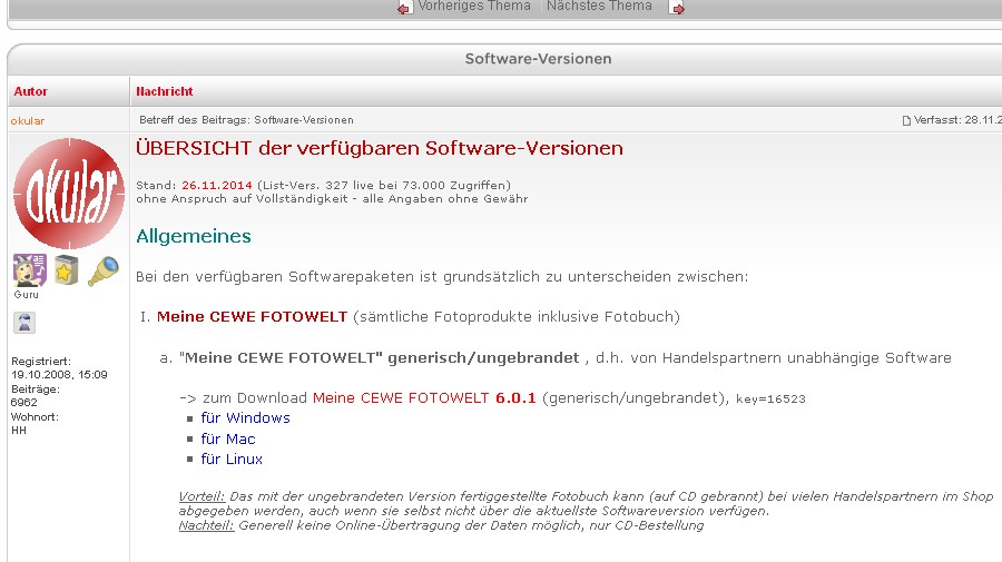 @ Silber-Distel: Im Unterforum "Cewe ... Software" wird ein neues Thema nur erstellt, wenn man mindestens das Betriebssystem angegeben hat. Ich bin da auch schon dran hängen geblieben.