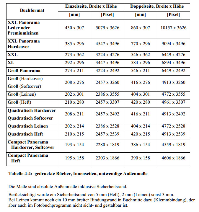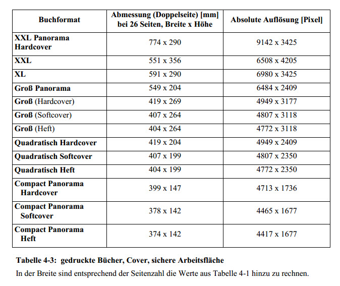 Für die "sichere Seite" werden offenbar 3mm rundherum abgezogen, und für den Überstand, damit keine Blitzer auftreten 10mm; letzteres scheint mir schon seeehr sicher. Die Breite des Buchrückens wird in dem Dialog leider nicht direkt angezeigt. Da muss man dann ein bisschen rechnen. Re: Genaue Seitengröße Fotobuch Panorama CompactRotuma, vielen Dank für die Bereitstellung der Maße.