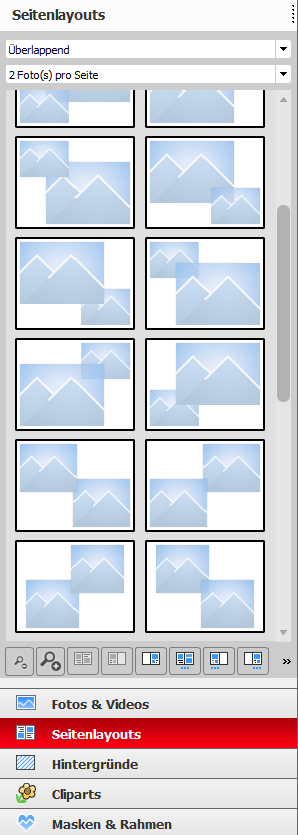 Sollten Sie sich dafür entscheiden Ihr Projekt vollkommen ohne den Assistenten zu gestalten, dann haben wir hier einige der wichtigsten Grundschritte für Sie zusammengefasst. - Bilder einfügen Um Ihre Fotos in das Projekt einzufügen haben Sie einige Möglichkeiten. Die gängigste und leichteste ist es Bilder mit gedrückter Maustaste auf die Seite zu ziehen. Klicken Sie also ihr gewünschten Bild an, halten die Maustaste gedrückt und legen Sie das Bild auf den weißen Seiten ab. Nur Bilder genügen Ihnen nicht? Dann können Sie selbstverständlich auch Texte in Ihr Projekt einfügen. In Ihrer Werkzeugleiste oberhalb der Buchseiten finden Sie hierfür den Bereich "Text". Mit einem Klick auf das Symbol mit dem gelben Plus können Sie einfach ein neues Textfeld in Ihre Buchseite legen. Natürlich können Sie auch bei der Anordnung Ihrer Bilder variieren. Dafür finden Sie links den Reiter "Seitenlayouts". Hierrin können Sie einige Vorlagen finden, wie Sie die Bilder auf einer Seite legen können. Die Layouts können Sie ebenso einfach anwenden, wie Sie Fotos einfügen können, in dem Sie das gewünschte Layout anklicken und mit gedrückter Maustaste auf die Buchseite ziehen. - Bildrahmen verändern Die Bilder auf Ihrer Arbeitsfläche im Editor können Sie vollkommen varibel verteilen. Wenn Sie einen Bildrahmen anklicken, werden Sie sehen, das rund um dieses Objekt unterschiedliche Anfasser erscheinen. - weitere Elemente Ebensoleicht wie Bilder können Sie auch weitere Elemente, die links in Ihren Werzeugen finden, in Ihr Projekt einfügen. Ziehen Sie zum Beispiel einfach einen Hintergrund auf eine Seite oder legen Sie einen Rahmen um eines Ihrer Fotos. Werden Sie kreativ und testen Sie die unterschiedlichen Möglichkeiten der Software. Liebe Grüße