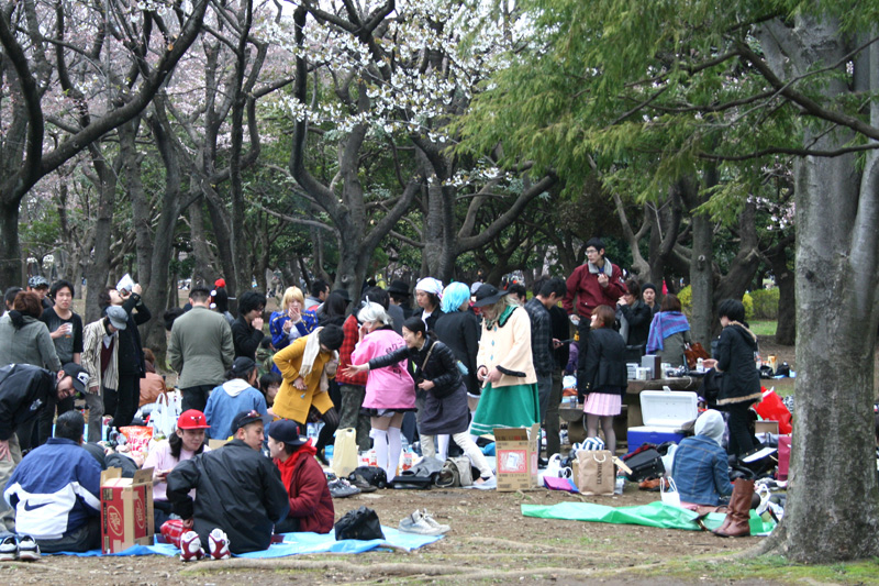 Oh, du meinst das romantische Ambiente in den Parks mit blauen Plastikunterlagen flächendeckend unter den Kirschbäumen, literweise Alkohol (z.B. 20-Liter-Kanister-Sake) und verrückte Verkleidungen?