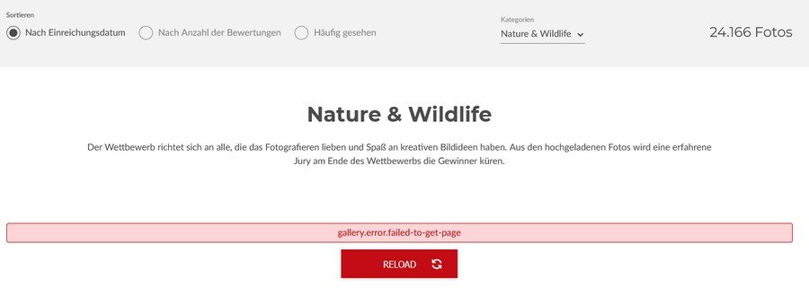 Das Hochladen von Bildern zum Photo Award ist gerade mal wieder mit Fehlermeldungen ("Request failed with status code 401") verbunden.