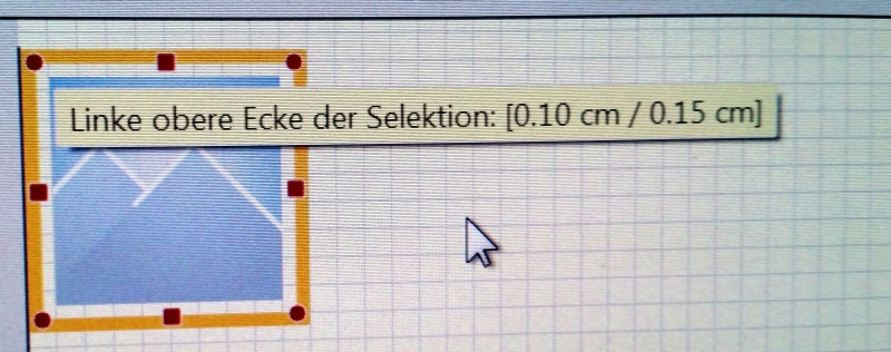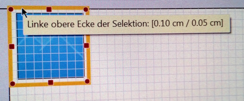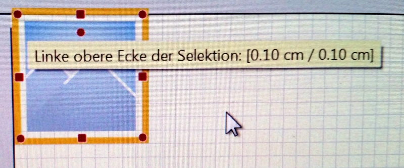 Ich habe das wohl nicht genau genug formuliert, sorry, Deutsch ist nicht meine Muttersprache. Nochmal von vorne. Ich gehe von einem Bild aus mit geraden Maßen. Die Anzeige spricht auch immer von dem gleichen Punkt zB. "Linke obere Ecke der Selektion". (klar ist die Reihenfolge umgekehrt... hoffentlich habe ich die Nummern nicht vermasselt - dass die Anzeige falsch anzeigt, kann man trotzdem sehen...) Bild ist 8x8 mm, ist platziert auf 0.10/0.05 (Bild 1), ist gut zu sehen. Zu Anfang zeigt der Anfasser auch diese Koordinaten (Bild 2). Und das ist das einzige Mal, wo er richtig anzeigt, hast du das Bild einmal bewegt, stimmt die Anzeige mit der Position praktisch nie mehr überein. Mit mehrmaligem hin-und-herwackeln kann man es evtl. einmal wieder korrekt haben, aber eher nicht. Nach paarmal hin und zurück Bewegen ist das Bild auf 0.10/0.10, aber die Anzeige zeigt falsch mit 0.10/0.05 an (Bild 3). Du spazierst nach unten, Bild ist auf 0.10/0.20, aber Anzeige zeigt 0.10/0.15 an (Bild 4) Du steppst jetzt zurück nach oben, Bild wandert auch zu 0.10/0.15 nach oben, Anzeige geht aber weiter aufwärts auf 0.10/0.20! (Bild 5)Bilder 6 und 7 zeigen ebenfalls falsche Anzeigen: Bild ist auf 0.10/0.05 und Anzeige zeigt 0.10/0.10, bzw. Bild ist auf 0.1/0.1 und Anzeige zeigt 0.1/0.15. Beobachte es mit einem 1-mm-raster und Pfeiltasten, du wirst merken, dass nach herunterfahren und dann beim ersten zurück-hoch-fahren zeigt die Anzeige statt dem korrekten wieder-schrumpfen weiter-anwachsen an, und die Position stimmt mit der Anzeige nicht überein. Wie gesagt, ein halber millimeter hin oder her ist für manche nicht wichtig. Bei einem Spiegel mit mehreren Bildern kann aber ein halber Millimeter schon sehr störend sein. Und das wichtigste: Die Anzeige hat korrekte Daten zu zeigen, sonst ist sie nicht nur wertlos, aber auch schädlich. Ich hoffe, ich konnte das klar erzählen, wenn nicht, sorry, aber spielt es nach und ihr werdet es verstehen! LG Old Nat, der Dino
