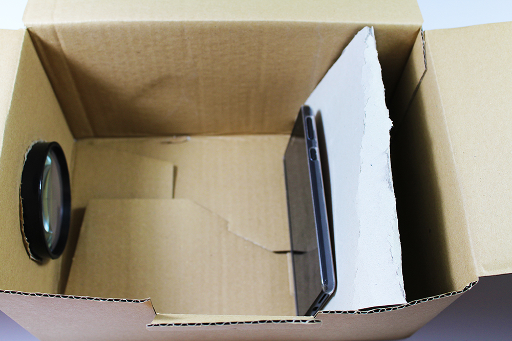 4. Zum Schluss stellen Sie nur noch Ihr Smartphone in den Karton und schon ist Ihr Projektor fertig!