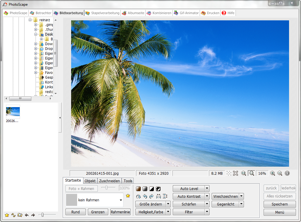 4. Wenn Sie Ihre Einstellungen mit OK bestätigen, wird Ihr Bild automatisch gedreht und überstehende Ränder abgeschnitten. Nun brauchen Sie Ihr Bild nur noch zu speichern.