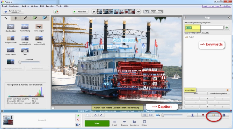Okular, welche SW verwendest du zum Befüllen der IPTC-Felder? Machst du das für ALLE Bilder, die du aufhebst?Re: Plauderecke - Bilderablage organisierenIch nutze vor allem das IPTC-Feld "caption" (description), welches sich sehr komfortabel in Picasa als Bildunterschrift eingeben läßt. Aber auch irfanview und xnview bieten diese Möglichkeit.