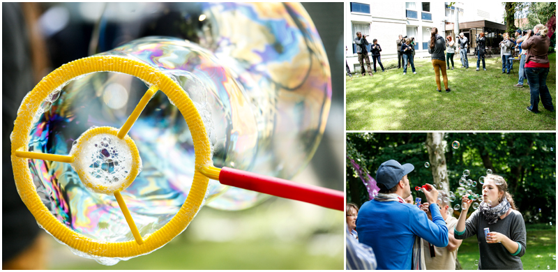 Die ersten praktischen Erfahrrungen konnten die Workshopteilnehmer schließlich im Garten des Tagungshotels machen. Beim Fotografieren von Seifenblasen konnten die Kameras bereits warm laufen. Dabei waren jedoch nicht nur die Seifenblasen ein spannendes Motiv sondern auch die bemühten Seifenblasenerzeuger... :wink: