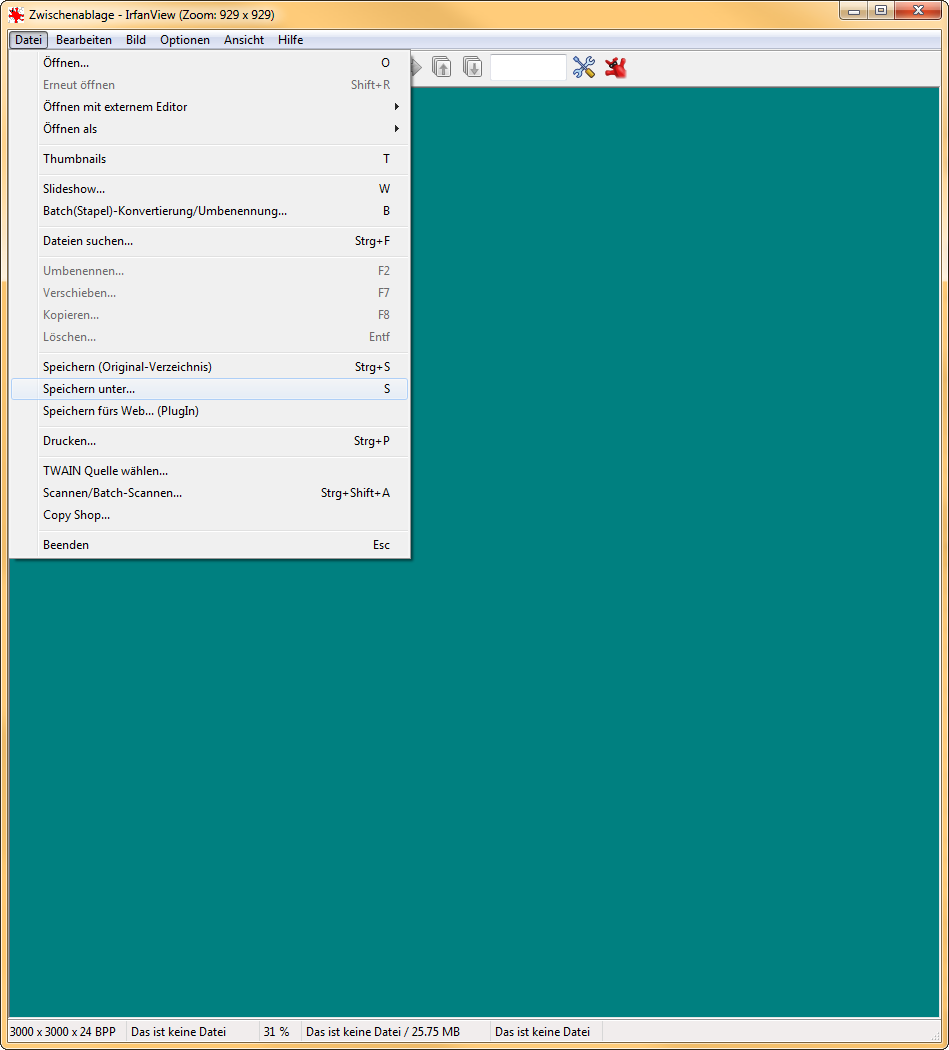 Um dieses Bild nun transparent zu bekommen, müssen Sie es als png speichern. Öffnen Sie dafür den Speicherdialog über "Datei" und "Speichern unter".