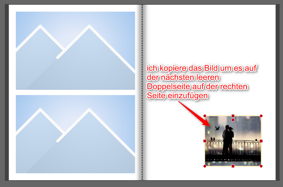 Vertsehe ich sie dahingegend richtig, dass Sie folgendes bemängeln: wenn man ein bereits eingefügtes Bild im Buch markiert und kopiert und es anschließend in bespielsweise einem leeren Bildfeld einfügen will, dann verändert sich die Größe und die Position dieses Bildfeldes dahingehend, dass es die des kopierten Objektes annimmt. Zur Verdeutlichung hier noch zwei Screenshots: Der zweite Fehler ist meines Erachtens, dass - wenn nichts selektiert ist - immer auf der linken Seite eingefügt wird (wie Josefia oben schreibt). Diesen Punkt kann ich nachstellen und auch nachvollziehen. Liebe Grüße