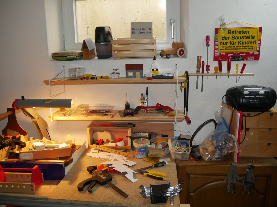 cracde Re: Challenge 03/2018 • Küssen verboten!Dieses Verbotsschild in unserem Keller beachte ich äußerst gerne. In diesem kreativen Chaos findet sich nur mein Sohn zurecht und fühlt sich dort äußerst wohl