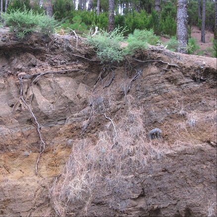 Auf dem Weg zum Anagagebirge war ein Abruch etwa 25 Meter hoch und da hat man schön die Pfahlwurzeln der kiefer und anderen niedrig wachsenden Streucher gesehen. Es ist aus fazinierend wie die Bäume bei den kargen Bedingungen wachsen können. Aufgenommen mit Nikon J1