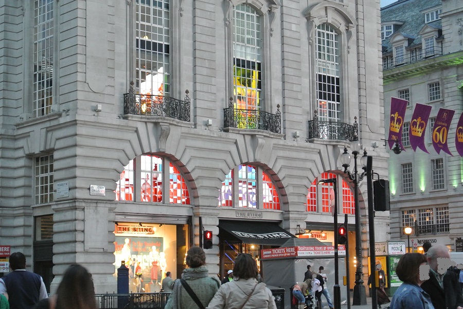 Ist nachts noch imposanter wie tagsüber, wenn sich die Werbung in den Schaufensterscheiben spiegelt