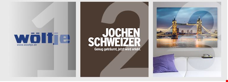 Als Hauptgewinn lockt ein Gutschein von Wöltje im Wert von 1.000,- Euro. Der zweite Preis ist ein Gutschein von Jochen Schweizer: Wellness-Kurzurlaub im Luxushotel für zwei Personen im Wert von 799,- Euro. Als dritten Preis vergeben wir einen Gutschein für CEWE WANDBILDER im Wert von 250,- Euro. Die Plätze 4 bis 10 gewinnen jeweils einen Gutschein für ein CEWE FOTOBUCH im Wert von 50,- Euro.