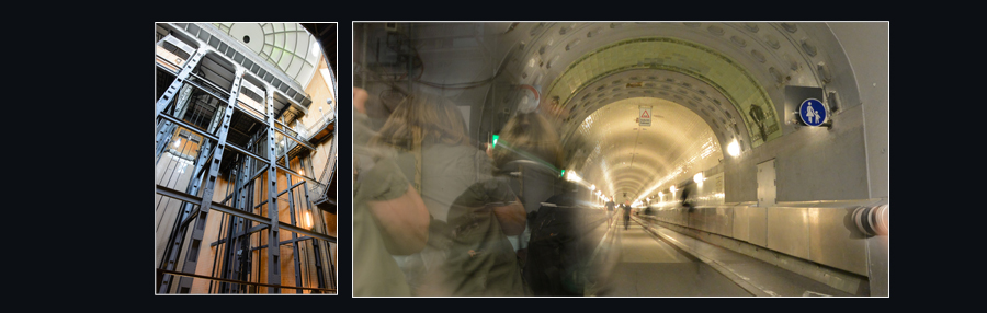 Abends schickte uns Robert zuerst in den Elbtunnel, wo wir nicht nur als Fotografen sondern auch als Slalomstangen für die Radfahren tätig waren.